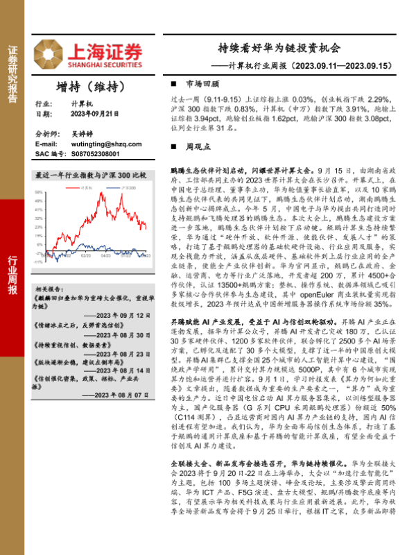 【上海证券】【20230921】20230921-上海证券-计算机行业周报:持续看好华为链投资机会-18页 行业研究