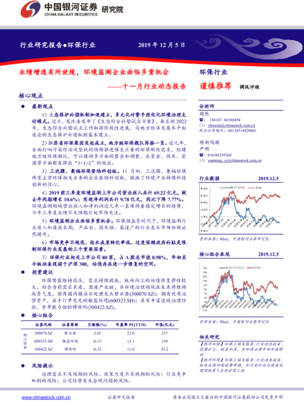 【银河证券】【20191205】环保行业十一月行业动态报告:业绩增速有所放缓,环境监测企业面临多重机会-20页 行业研究