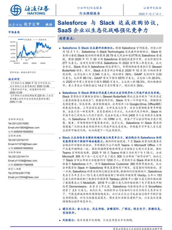【海通证券】【20201212】信息服务行业跟踪报告:Salesforce与Slack达成收购协议,SaaS企业以生态化战略强化竞争力-2页 行业研究