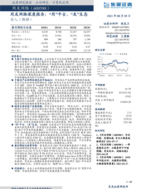 【东吴证券】【20210805】用友网络深度报告:“用”平台,“友”生态-42页 行业研究