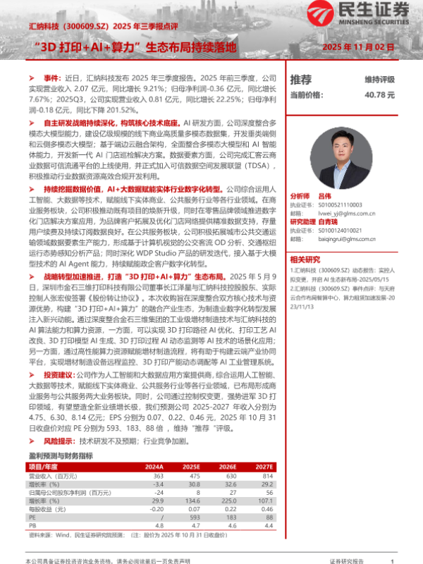 【民生证券】【202510】2025年三季报点评:“3D打印+AI+算力”生态布局持续落地-3页 证券期货研究报告