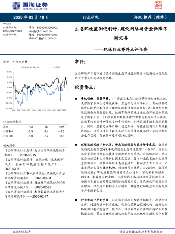 【国海证券】【20200318】环保行业事件点评报告:生态环境监测迎利好,建设网络与资金保障不断完善-4页 行业研究