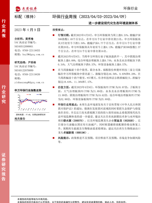 【东莞证券】【20230409】环保行业周报:进一步建设现代化生态环境监测体系-11页 行业研究