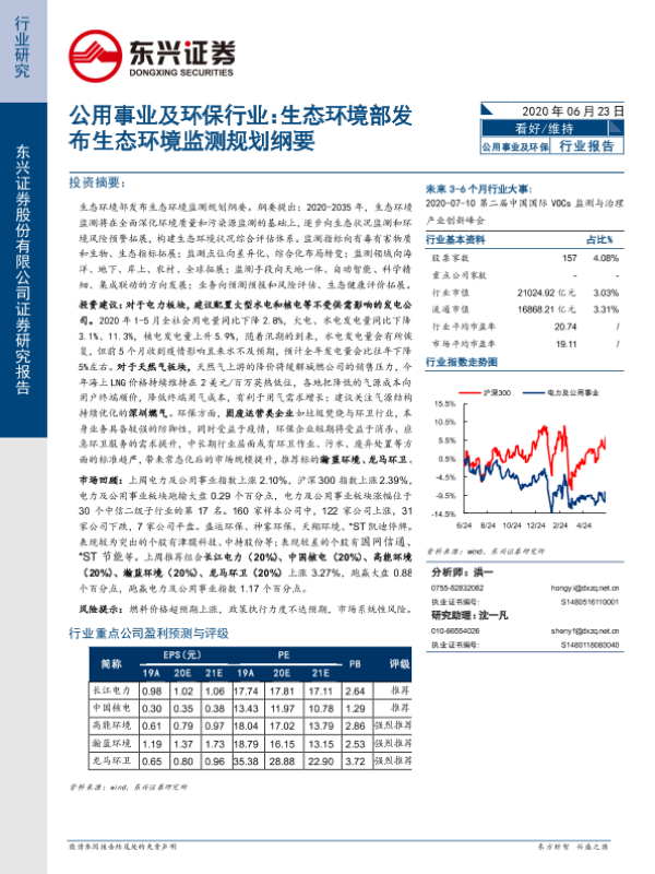 【东兴证券】【20200623】公用事业及环保行业:生态环境部发布生态环境监测规划纲要-8页 行业研究