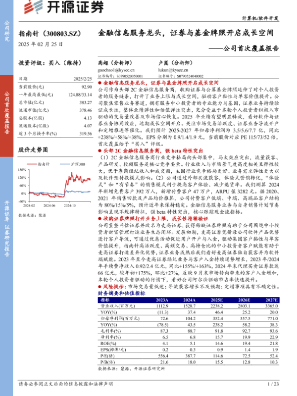 【开源证券】【20250225】指南针-300803.SZ-公司首次覆盖报告:金融信息服务龙头,证券与基金牌照开启成长空间-23页 公司研究