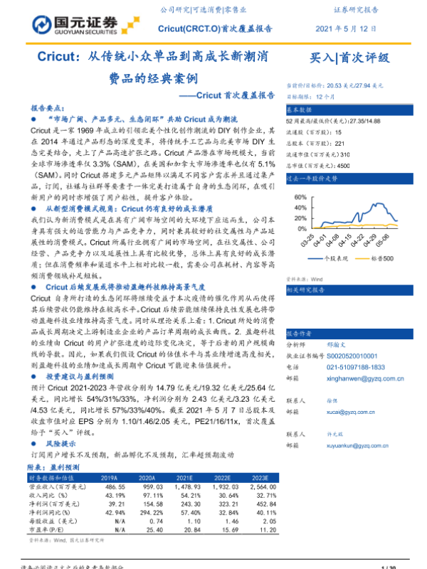 【国元证券】【20210512】Cricut:从传统小众单品到高成长新潮消费品的经典案例-30页 行业研究