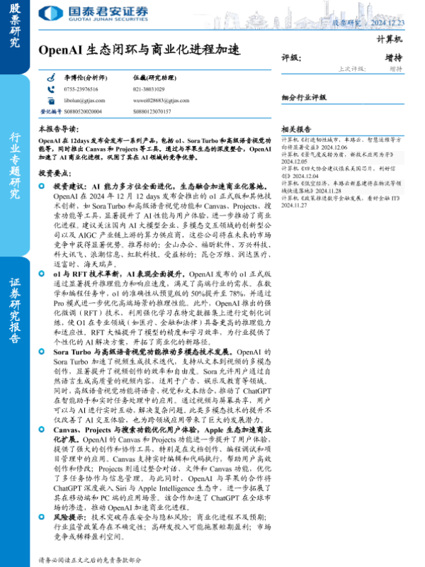 【国泰君安证券】【20241223】计算机行业:OpenAI生态闭环与商业化进程加速-19页 行业研究