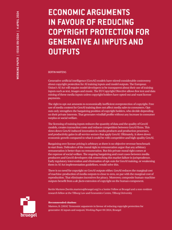 【布鲁盖尔研究所】【202404】支持减少对生成人工智能输入和输出的版权保护的经济论据-23页 行业研究
