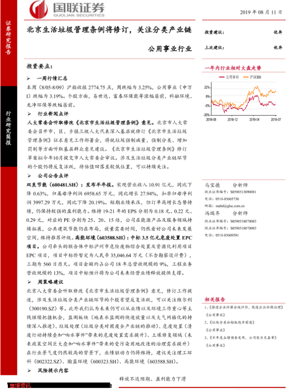 【国联证券】【20190811】公用事业行业:北京生活垃圾管理条例将修订,关注分类产业链-12页 行业研究
