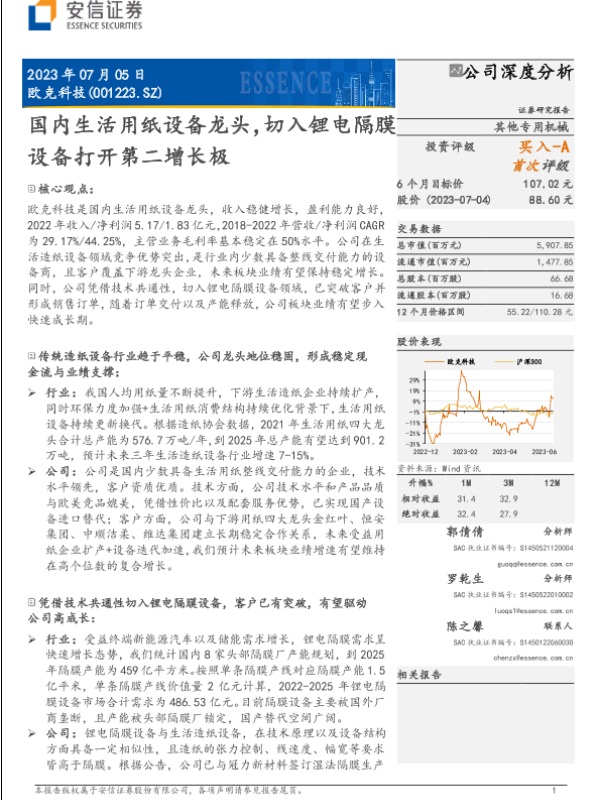 【安信证券】【20230705】欧克科技-001223.SZ-国内生活用纸设备龙头,切入锂电隔膜设备打开第二增长极-24页 行业研究