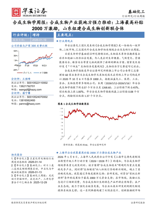 【华安证券】【202601】合成生物学周报:合成生物产业获地方强力推动:上海最高补贴2000万激励,山东组建合成生物创新联合体-18页 证券期货研究报告