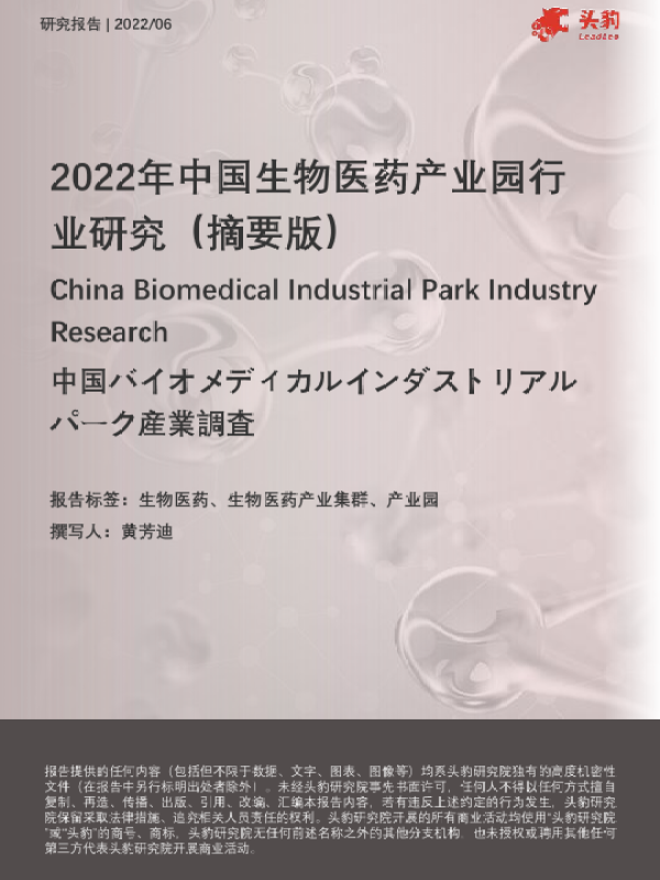 【头豹研究院】【202206】2022年中国生物医药产业园行业研究(摘要版)-18页 行业研究