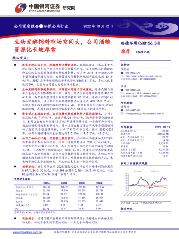 【广发证券】【20230523】路德环境(688156.SH)生物发酵饲料放量期已至,高成长价值凸显-26页 行业研究