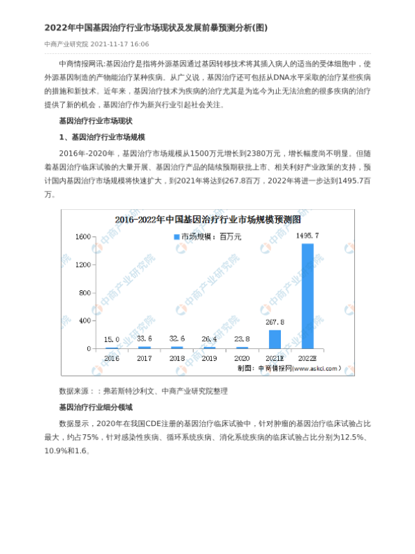 【中商产业研究院】【20211117】2022年中国基因治疗行业市场现状及发展前景预测分析-3页 行业研究