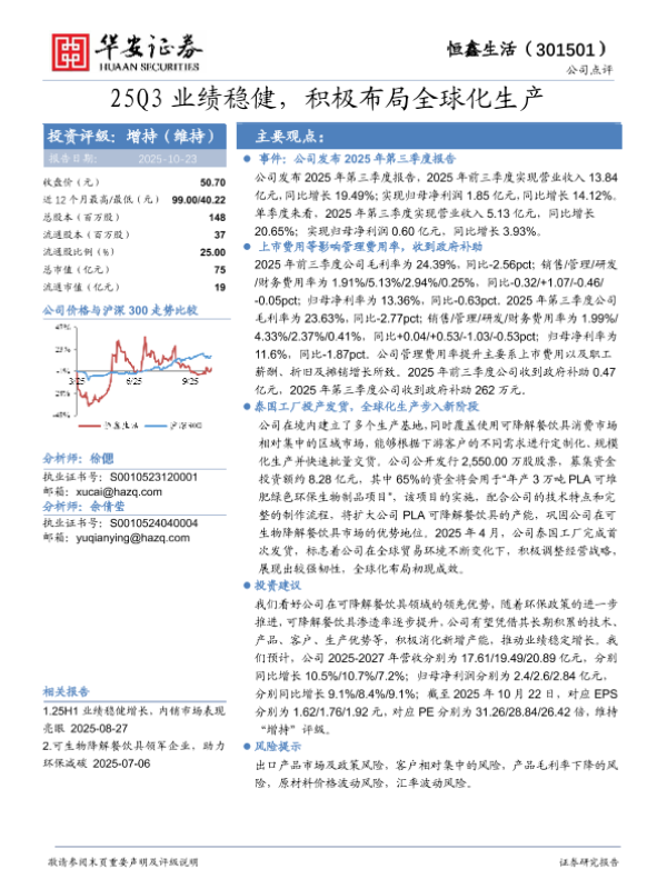 【华安证券】【2025】25Q3业绩稳健,积极布局全球化生产-4页 证券期货研究报告
