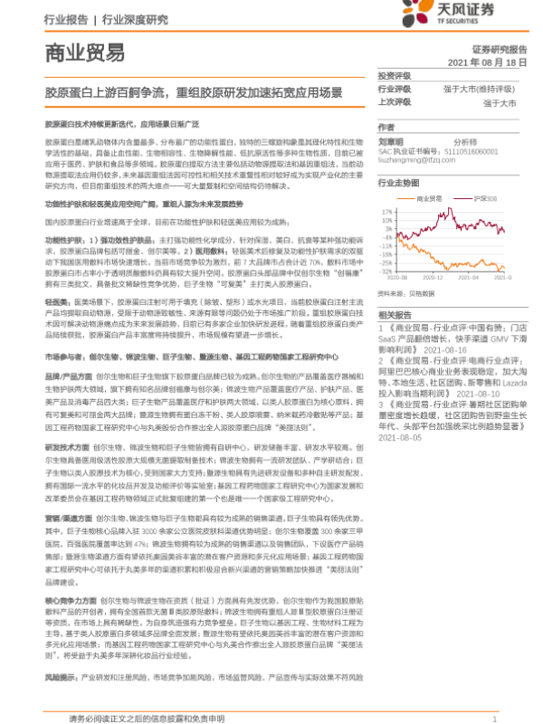 【天风证券】【20210818】商业贸易行业深度研究:胶原蛋白上游百舸争流,重组胶原研发加速拓宽应用场景-34页 行业研究