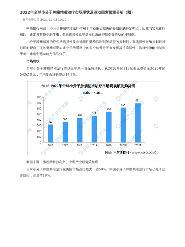 【中商产业研究院】【20211203】2022年全球小分子肿瘤精准治疗市场现状及驱动因素预测分析-2页 行业研究