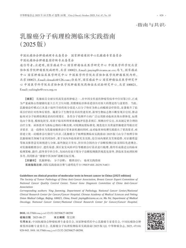 【中国抗癌协会肿瘤病理专业委员会&国家肿瘤质控中心乳腺癌专家委员会&中国抗癌协会肿瘤基因诊断专业委员会】【2025】乳腺癌分子病理检测临床实践指南(2025版)-17页 指南