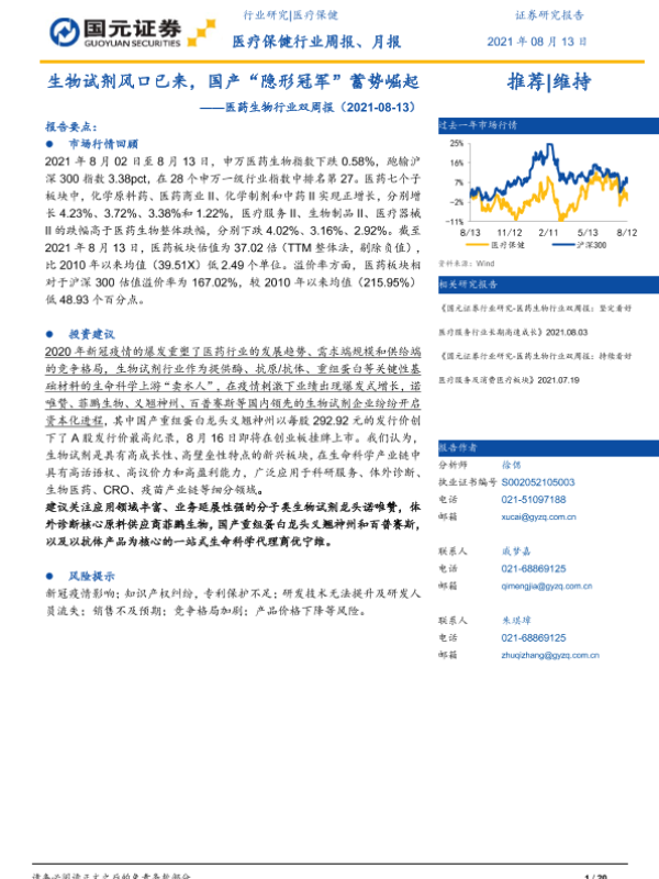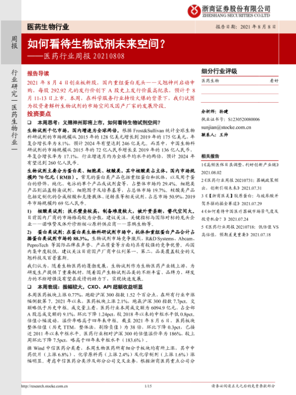 【国元证券】【20210813】医药生物行业双周报:生物试剂风口已来,国产“隐形冠军”蓄势崛起-20页 行业研究