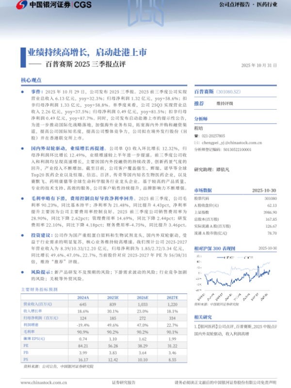 【银河证券】【2025】百普赛斯2025三季报点评:业绩持续高增长,启动赴港上市-3页 证券期货研究报告