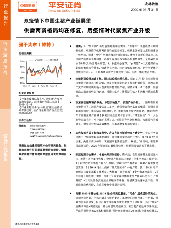 【平安证券】【20200331】双疫情下中国生猪产业链展望:供需两弱格局均在修复,后疫情时代聚焦产业升级-31页 行业研究