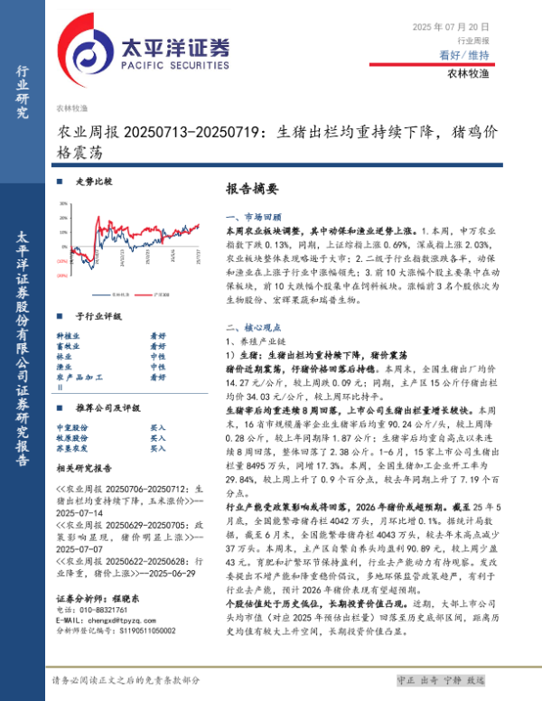 【太平洋证券】【20250720】农业周报:生猪出栏均重持续下降,猪鸡价格震荡-17页 行业研究