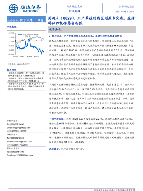 【海通证券】【20210829】20210829-海通证券-农业周观点:水产养殖功能区划基本完成,生猪补栏积极性屡创新低-4页 行业研究