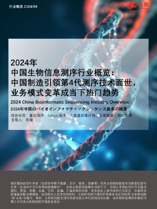 【头豹研究院】【20240401】2024年中国生物信息测序行业概览-中国制造引领第4代测序技术面世-业务模式变革成当下热门趋势-24页 行业研究