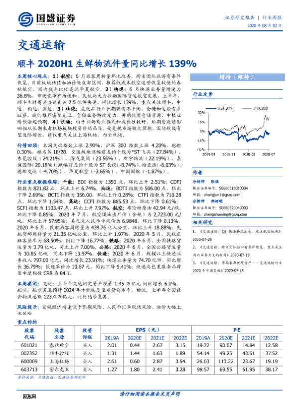 【国盛证券】【20200802】顺丰2020H1生鲜物流件量同比增长139%-19页 行业研究