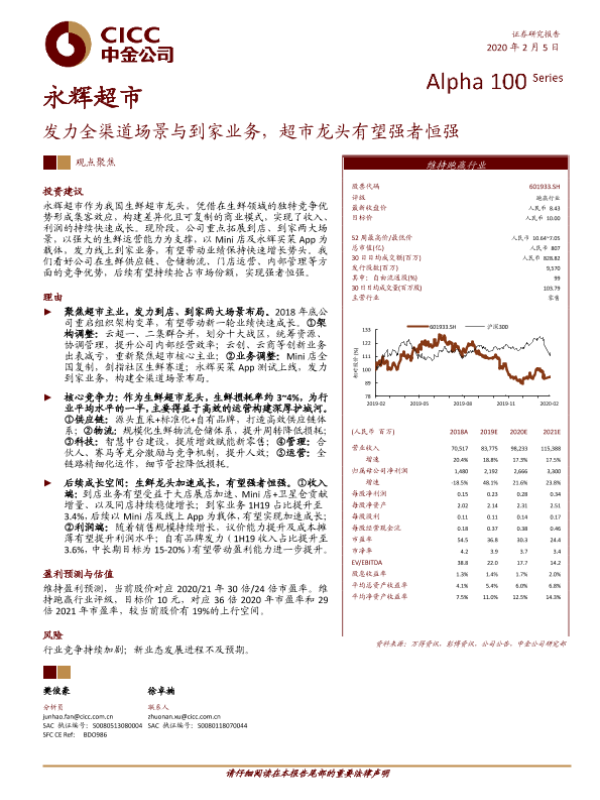 【中金公司】【20200205】永辉超市-发力全渠道场景与到家业务,超市龙头有望强者恒强-24页 行业研究