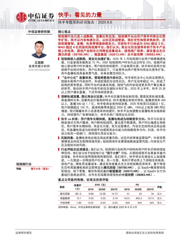 【中信证券】【20200806】快手:看见的力量-31页 行业研究