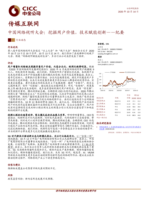 【中金公司】【20201014】中国网络视听大会:挖掘用户价值,技术赋能创新——纪要-5页 会议纪要