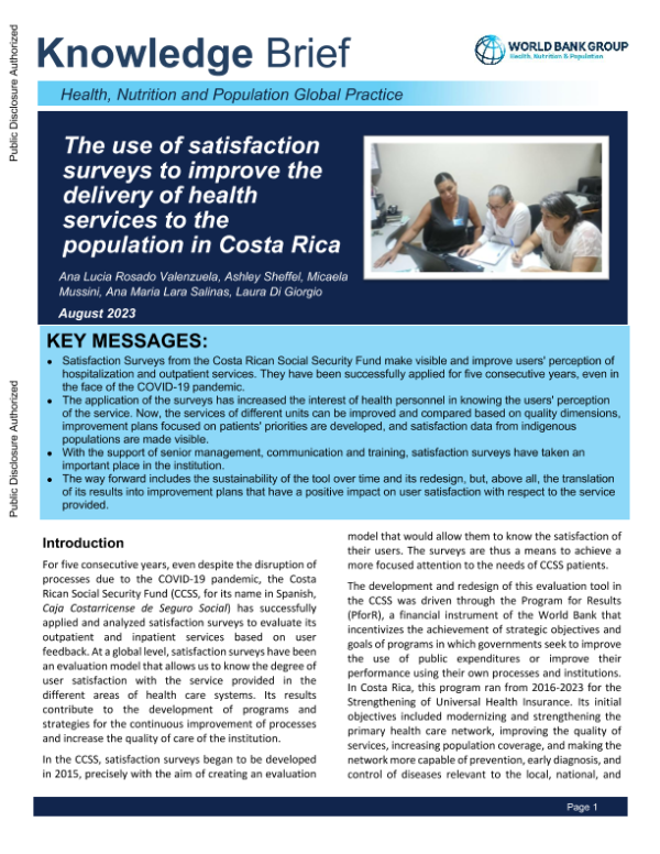 【世界银行】【2023】利用满意度调查改进向哥斯达黎加人民提供卫生服务的情况-7页 白皮书