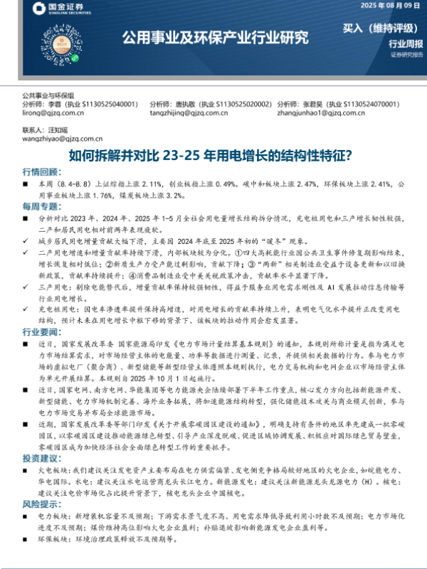【国金证券】【20250809】如何拆解并对比23-25年用电增长的结构性特征?-15页 证券期货研究报告