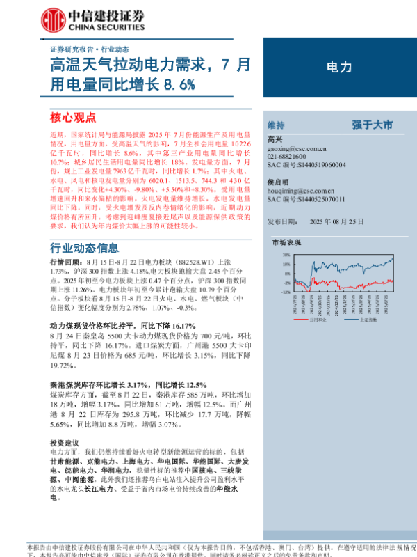 【中信建投证券】【202508】高温天气拉动电力需求,7月用电量同比增长8.6%-20页 证券期货研究报告