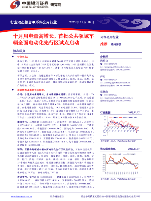 【银河证券】【20231118】十月用电量高增长,首批公共领域车辆全面电动化先行区试点启动-11页 行业研究