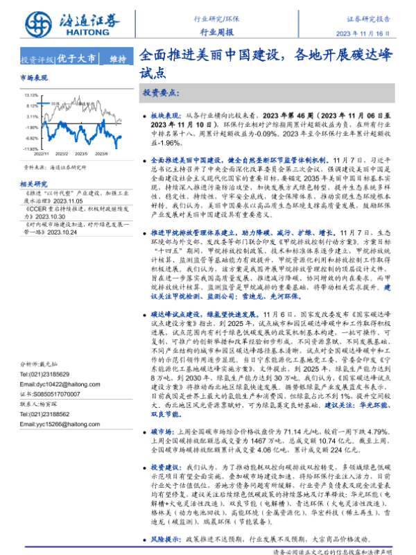 【海通证券】【20231116】全面推进美丽中国建设,各地开展碳达峰试点-15页 行业研究