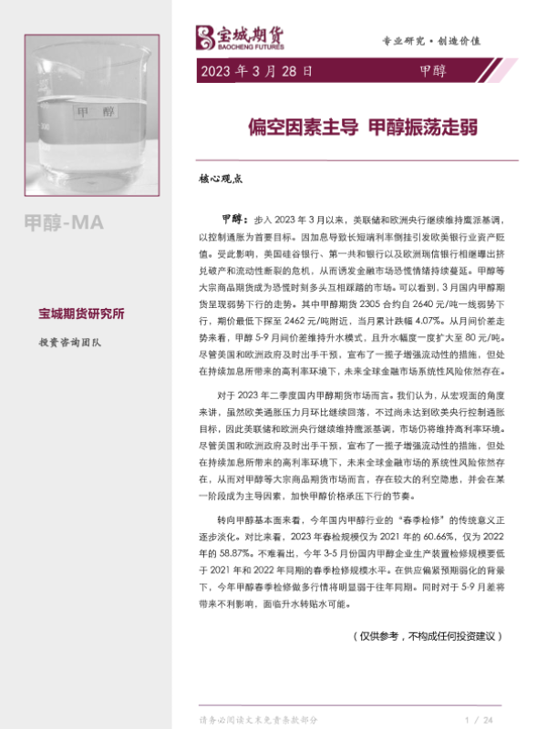 【宝城期货】【20230328】甲醇月报:偏空因素主导,甲醇振荡走弱-27页 行业研究