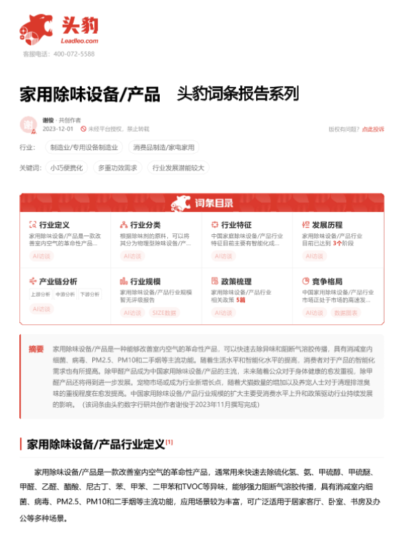 【头豹研究院】【20240125】20240125-头豹研究院-家用除味设备 产品 头豹词条报告系列-15页 行业研究