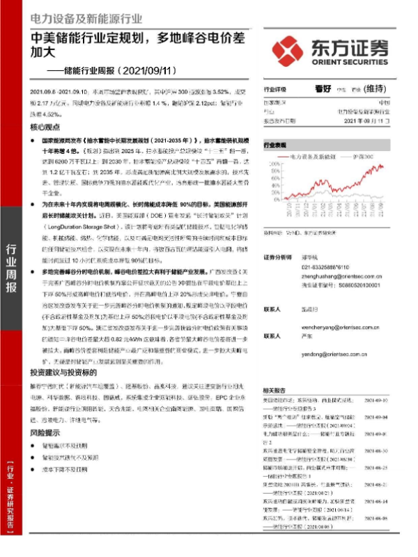 【东方证券】【20210911】20210911-东方证券-储能行业周报:中美储能行业定规划,多地峰谷电价差加大-17页 行业研究