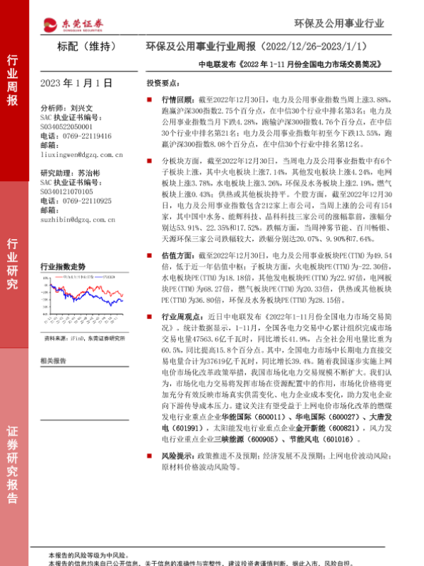 【东莞证券】【20230101】环保及公用事业行业周报:中电联发布《2022年1-11月份全国电力市场交易简况》-13页 行业研究