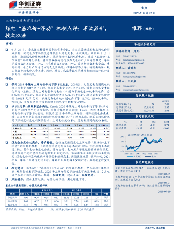 【华创证券】【20190927】煤电“基准价+浮动”机制点评:革故鼎新,授之以渔-3页 行业研究