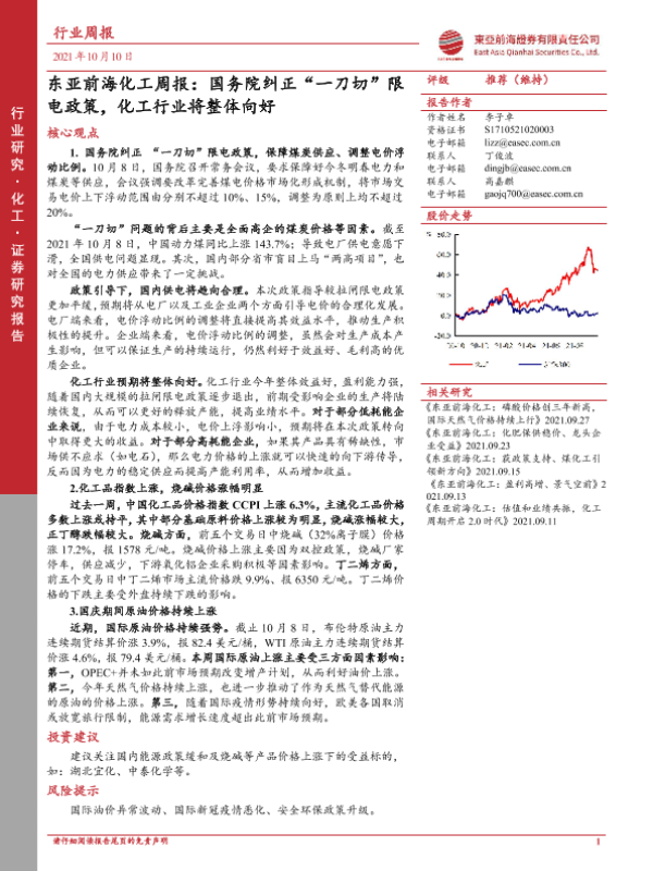 【东亚前海证券】【20211010】东亚前海化工周报:国务院纠正“一刀切”限电政策,化工行业将整体向好-20页 行业研究