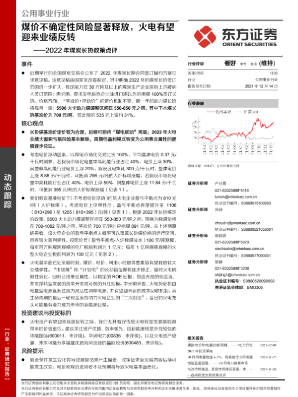 【东方证券】【20211214】2022年煤炭长协政策点评:煤价不确定性风险显著释放,火电有望迎来业绩反转-4页 行业研究