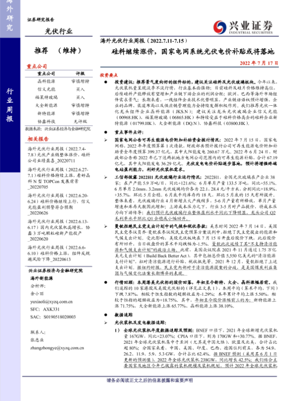【兴业证券】【20220717】海外光伏行业周报(2022.7.11-7.15)-21页 行业研究
