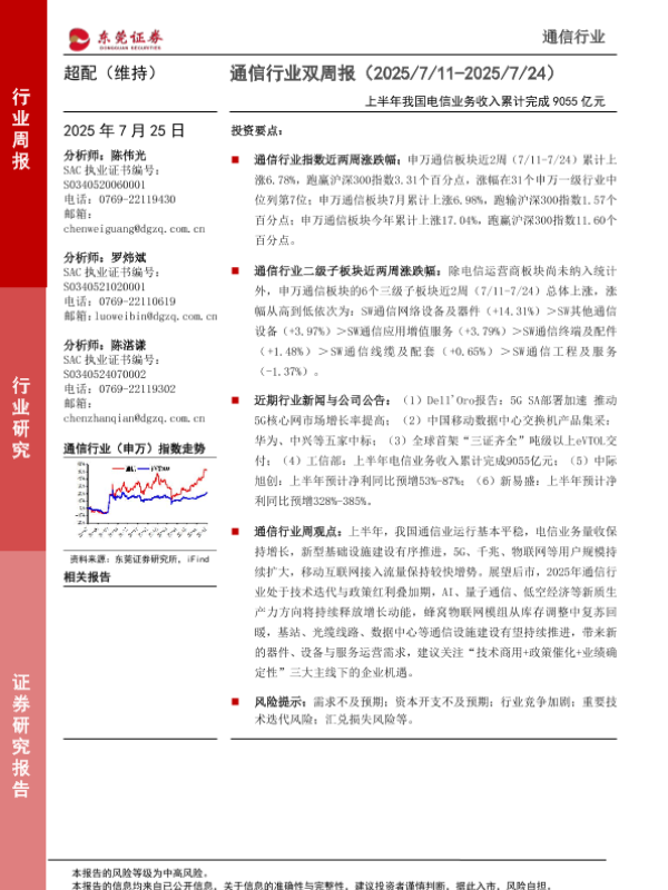 【东莞证券】【20250725】通信行业双周报:上半年我国电信业务收入累计完成9055亿元-11页 行业研究