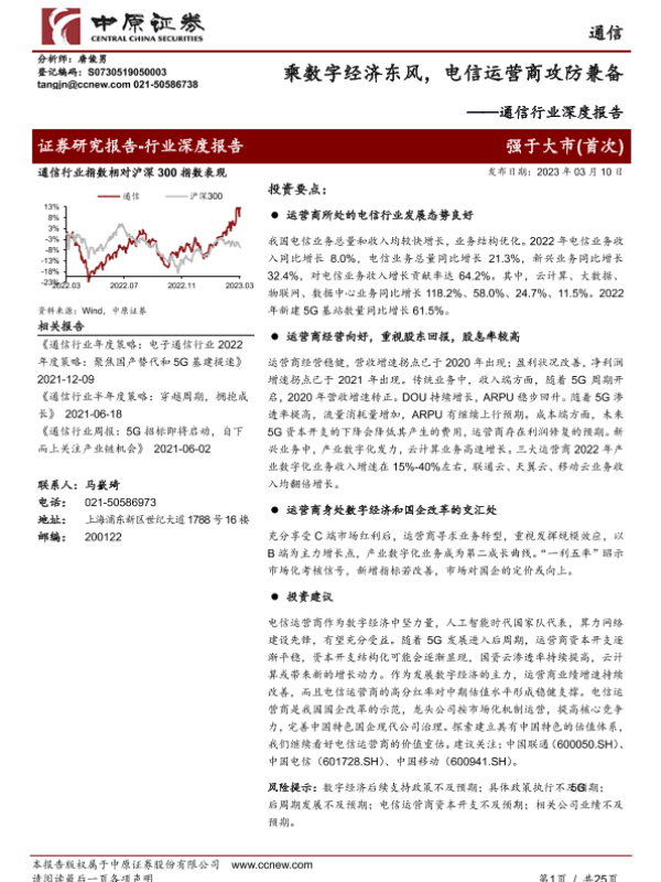 【中原证券】【20230310】通信行业深度报告_乘数字经济东风_电信运营商攻防兼备-25页 行业研究