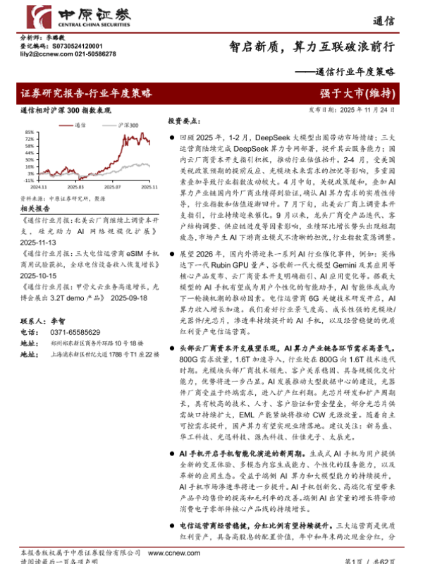 【中原证券】【202511】通信行业年度策略:智启新质,算力互联破浪前行-62页 证券期货研究报告
