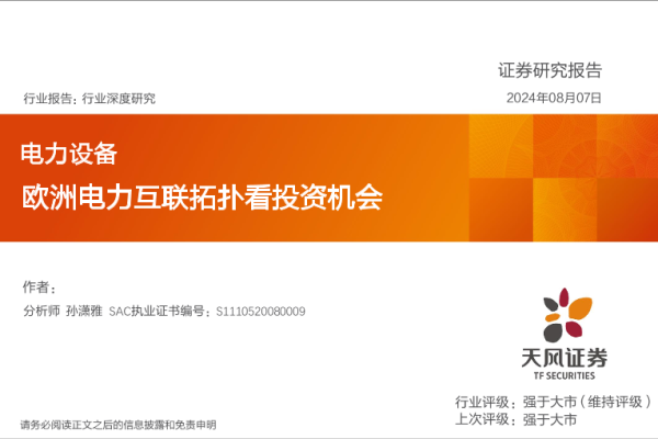 【天风证券】【20240807】电力设备行业深度研究:欧洲电力互联拓扑看投资机会-16页 行业研究