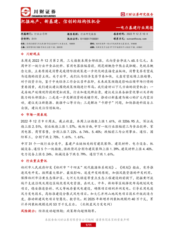 【川财证券】【20221210】电力基建行业周报:把握地产、新基建、信创的结构性机会-11页 行业研究